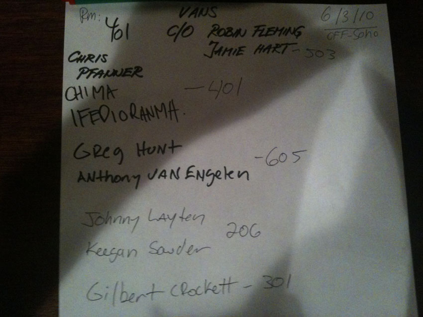 a bunch of Vans skaters were staying other places, Dustin was staying