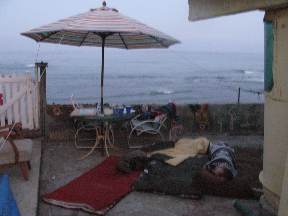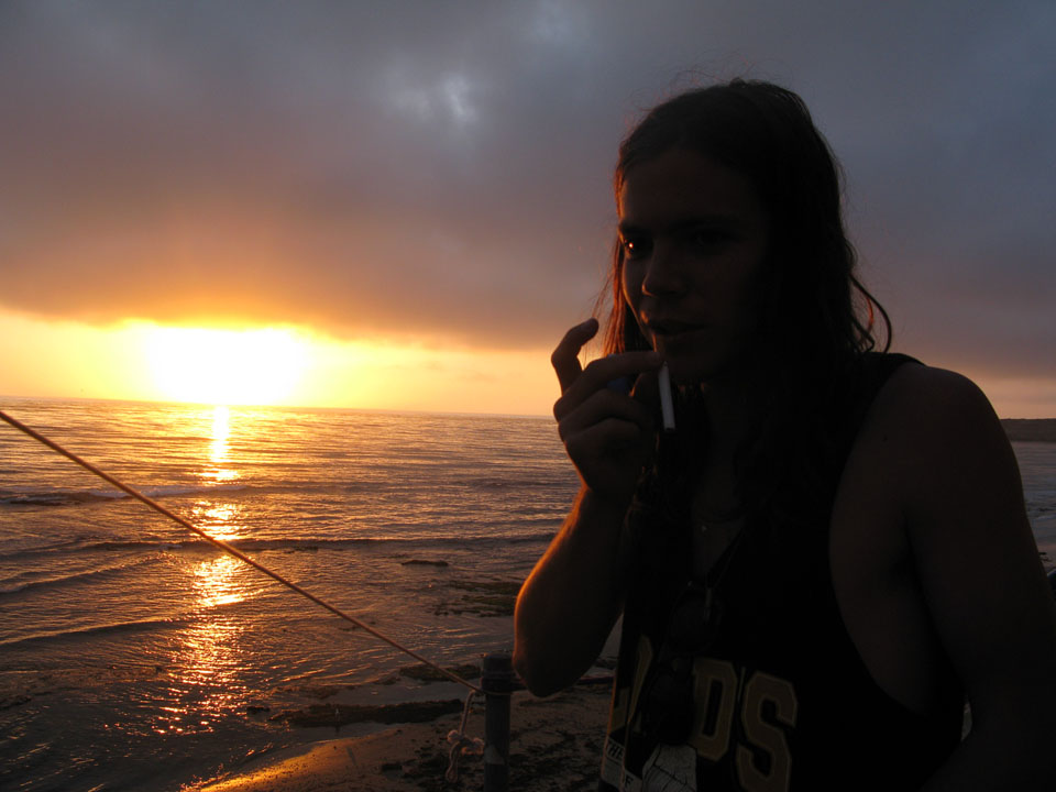 sun was coming up and the frat party was still blazing in my ear.